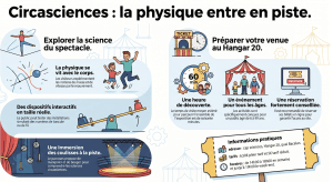 L’exposition Circasciences en piste propose une expérience interactive autour des arts du cirque, en expliquant les phénomènes physiques comme l’équilibre, la force ou la vitesse. Les visiteurs peuvent tester, manipuler et expérimenter pour mieux comprendre les performances des artistes.